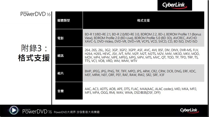 ▼ 在播放的媒體種類方面, PowerDVD 16 可以說是相當的多元耶,在靜態的