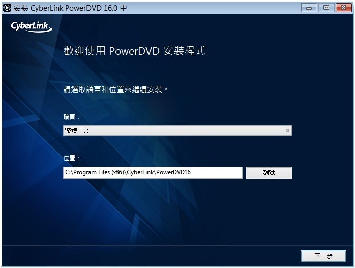 ▼ PowerDVD 16 是使用 光碟來進行安裝.