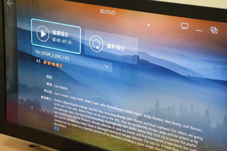▼ 播放 BD 上 真的很方便,丸爸放進碟片就出現電影的相關資訊,在播放上