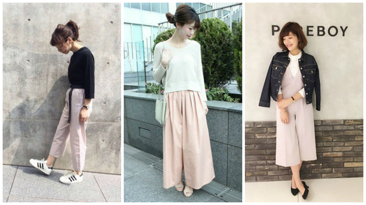 不只是指有鬆緊帶的寬褲,接近褲裙的那種,和一件式的吊帶寬褲各有風味。寬襬的設計帶有一點慵懶的春天氣息,石英粉的淡雅氣質可以給人平和的親切感,搭配休閒女鞋真是再適合不過了。除了黑色可以做上下對比的搭配之外,白色也行,黑白兩種顏色不論搭配什麼鮮豔的顏色仍然百搭。