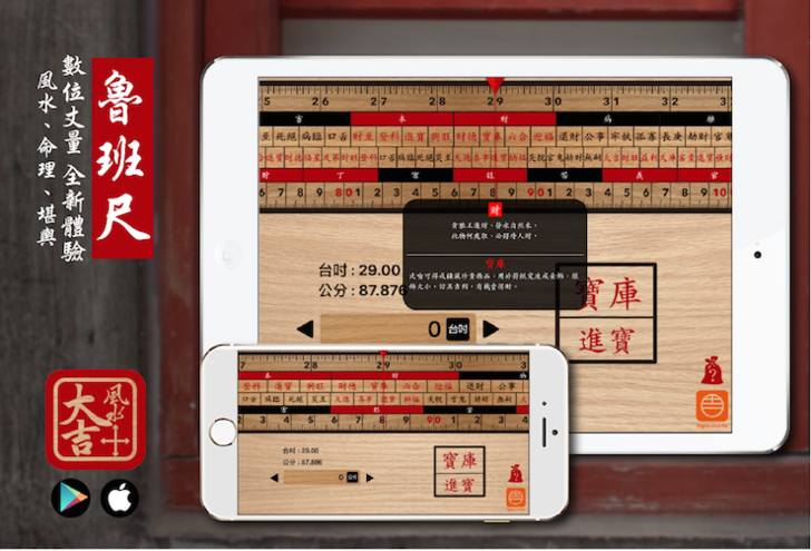 亞洲地區的朋友們對「魯班尺」應該不太陌生吧?強力推薦「魯班尺」APP。讓你不論小自居家擺設大至土地規劃都能輕鬆找出適合的好風水!「魯班尺」被廣泛用於各類尺寸丈量需求,透過好風水讓每個空間啟用都是好的開始,也為處在同個區域的每個成員招來好運氣~