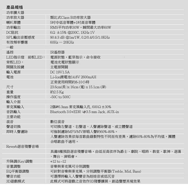 brio 魔力320行動KTV 更多產品功能詳細介紹: