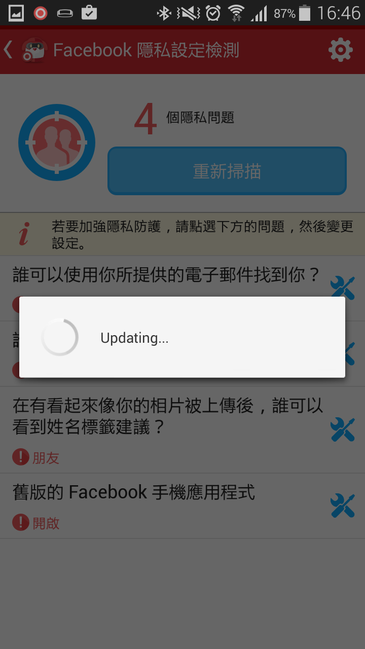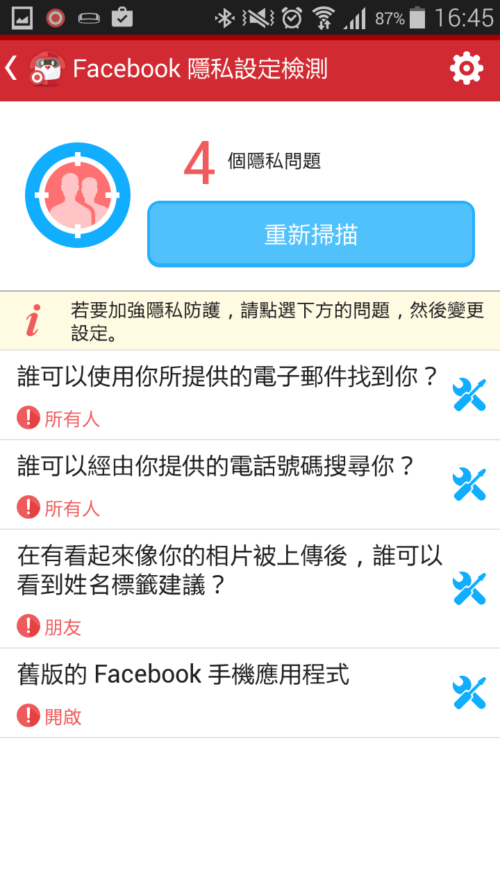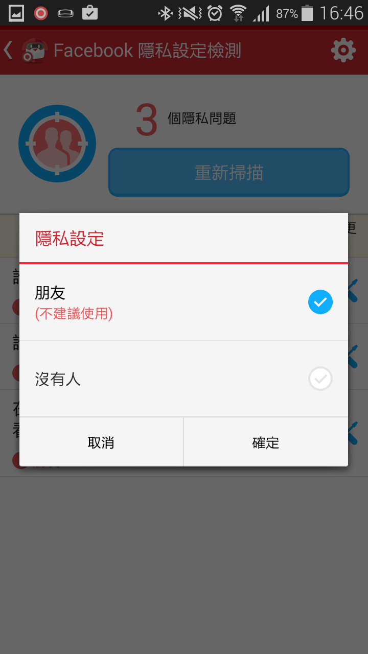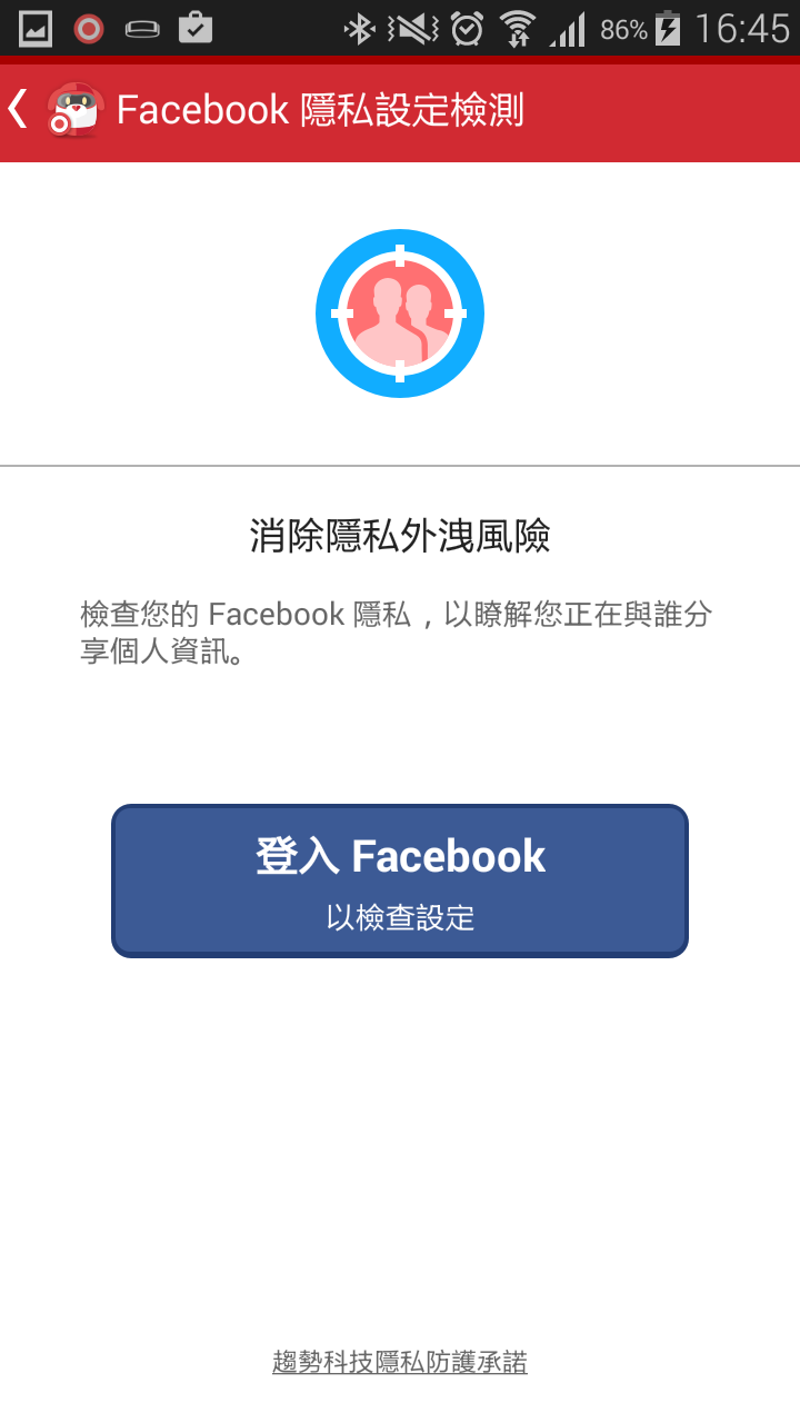 PC-cillin給了手機免費的防毒在facebook隱私設定非常簡單,並且能定時掃描提醒安全漏洞