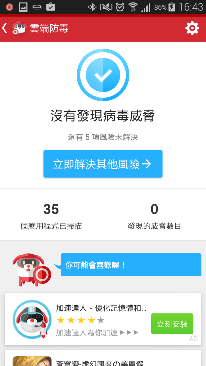 經過了上述安全達人的使用介紹後,可以知道非常的簡單易用,可以讓你我的手機免於風險哦。
