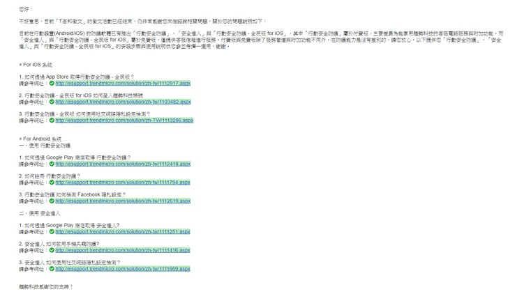 至於回覆內容也很完整,因為我提出希望可以利用圖解的方式說明我的問題"諮詢手機安裝防毒軟體後,要如何使用社交網路隱私設定檢測?"這個網址內就有很清楚的圖解,讓不懂電腦的使用者清楚易懂。