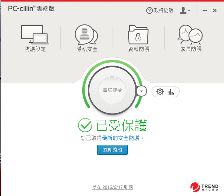 首先我要說PC-cillin雲端版真的還不錯,它會不定期的要求更新,除了新的防毒碼外,若有重大功能更新也會免費提供升級,就像我原本安裝的是PC-cillin雲端版2015,在今年年初它就主動提醒我要更新到2016新版,此更新除了讓我的防毒軟體在最新的狀態下執行安全防護程式,也讓我可以使用PC-cillin雲端版2015中所沒有的新功能,我只能說PC-cillin雲端版有物超所值的感覺。