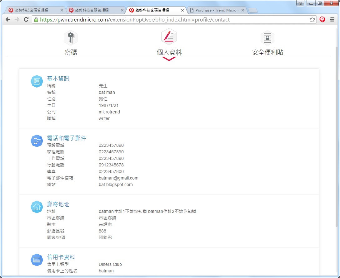 ▲ 以上這些資料不是購物平台常用的資料嗎?原來「密碼管理通」可以協助自動填寫網頁表單。