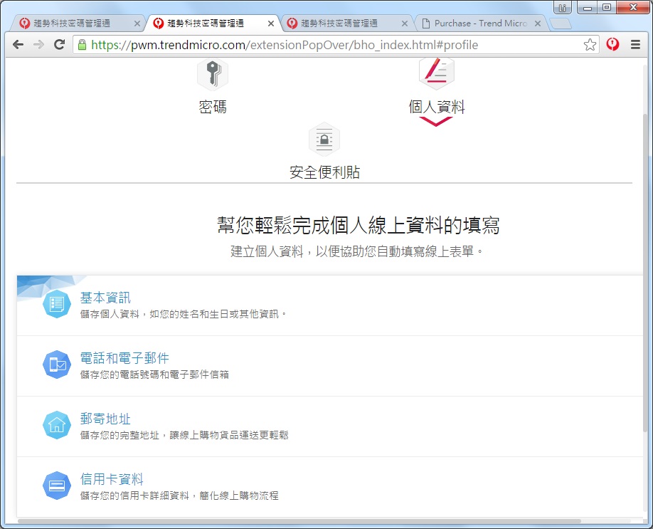 ▲趨勢科技 「密碼管理通」可以利用一組超級密碼來管理自身的所有密碼。