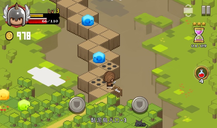 與怪物戰鬥時除了攻擊之外也需要抓時間來點盾牌圖示做防禦以及反擊,並在規定時間內盡快到達終點。遊戲難度提升、怪物以及陷阱難度也會隨之提升。