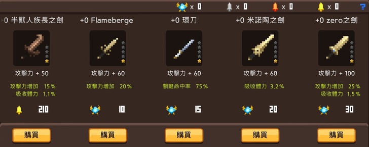 遊戲內的角色強化系統,玩家可透過達成條件門檻購買武器,或是使用金幣來提升裝備素質來加強角色並通過更困難的關卡。