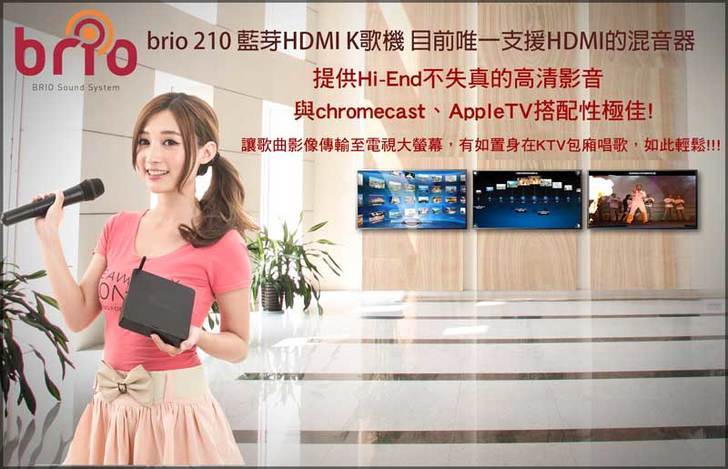 brio 210藍芽HDMI K歌機 目前唯一支援HDMI的混音機,與chromecast、AppleTV搭配性佳,讓唱歌有如置身在KTV包廂!!