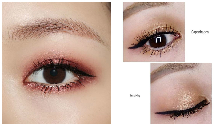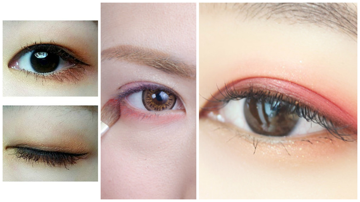 不論是單眼皮還是雙眼皮的人,在上眼皮靠近上睫毛根部的位置,輕輕用刷具刷一條細細的有色眼影,顏色要清楚可見,記得不要刷太大的面積,如果是雙眼皮的人,顏色覆蓋的位置不要超過雙眼皮最佳,愈向外擴散顏色要愈淺到幾乎看不見,打造輕薄有色眼妝。下眼皮的臥蠶之上接近睫毛根部的位置也輕輕刷一條細細的眼影,同樣地愈往外擴散顏色要淺到幾乎看不見。最後將上下兩條細細眼影的顏色接合在眼尾處和延伸到眼頭,彷彿形成一圈環繞在眼睛的漸層色。