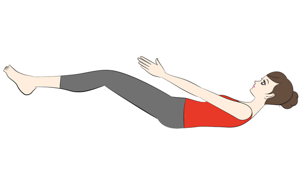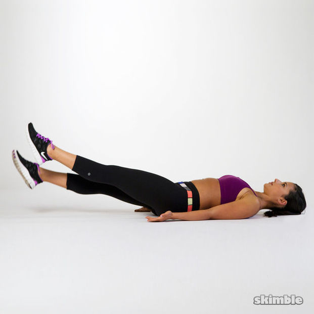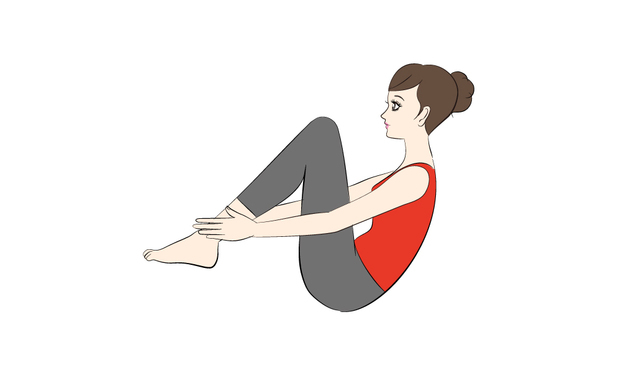 平躺,雙腿微抬浮在空中,手的方向朝身體與大腿平行,稍稍帶動抬起上半身的肩膀。抬起身體時彎曲膝蓋,並以雙手輕碰腳踝,使整個人身體蜷曲起來。大約做15輪。