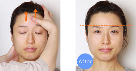 ④ 最後利用拇指,從額頭開始往髮緣向上按摩。