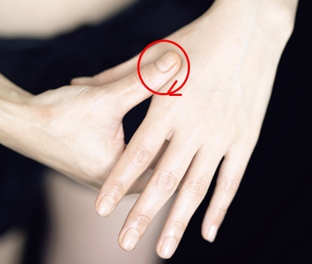 位在虎口的合谷穴,在生理痛時以左右交替按壓5秒的方式去刺激,也能達到紓緩疼痛的效果。