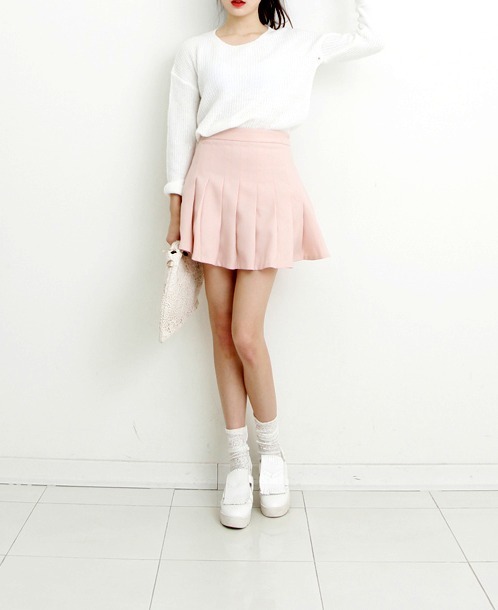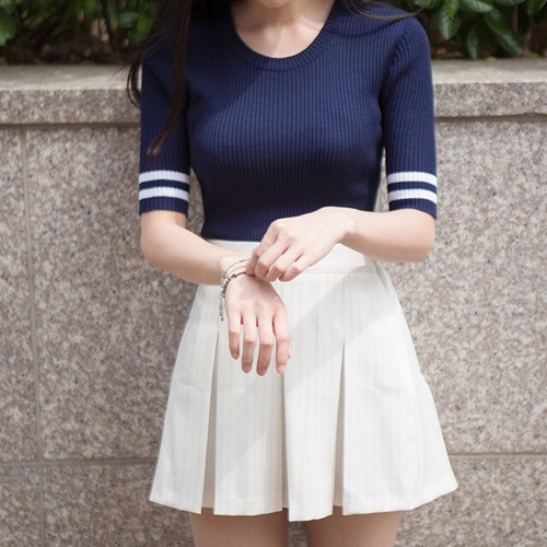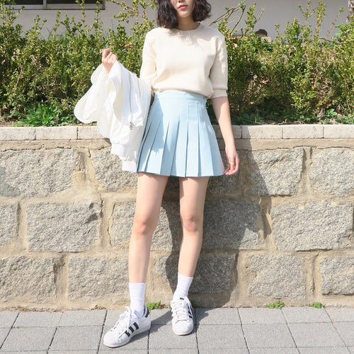 百褶裙的人氣從去年夏天開始至今依然沒有退燒,韓妞們主要喜歡用針織衫及T恤來做搭配,剛好也是兩種不同的風格,不管是小女人或是青春少女路線都很搭。