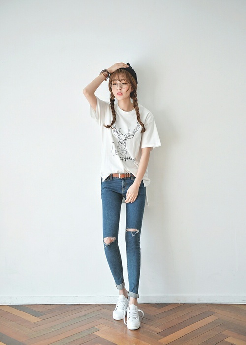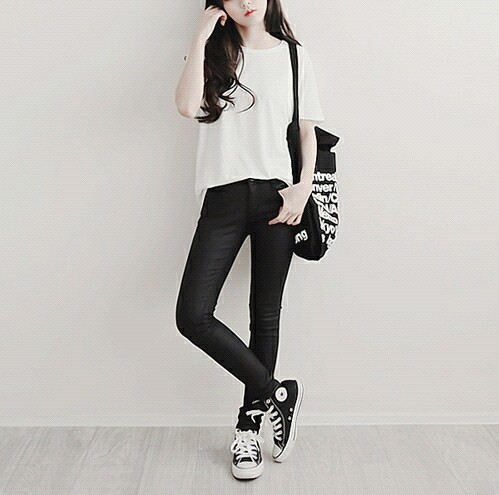 其實有在關注韓妞穿搭的人大概都會發現,她們很喜歡白色的單品,不管是襯衫、T恤、洋裝等等,白色出現的機率真的很高,而另外一個韓妞最愛的單品就是窄管褲,雖然說春夏季節穿著長褲可能會有點悶熱,但是與白色上衣的組合,視覺上看起來就顯得清爽許多,如果鞋子的部分再配上一雙小白鞋,就更能展現出女孩清新的氣質。