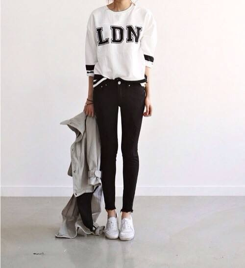 這組完全就是最基本且不敗的穿搭組合,不僅舒適又不失女孩的可愛感,配件的部分可以再加個輕巧的小包或是手拿包,俐落的褲裝加上寬鬆可以修飾身材的上衣,是很適合跟好姊妹吃飯或是與男友約會的穿搭。