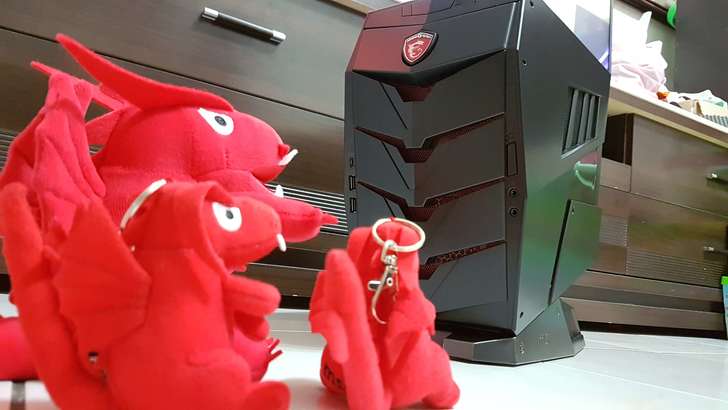 以公仔視角看「Aegis神盾 宙斯」是有點大台(誰平常用公仔視角看東西啦),但以正常人視角來說,這台真的不大,感覺MSI近幾年除了致力研發及推廣電競產品外,也在想如何於將產品精簡、瘦身,或是整合在一起。