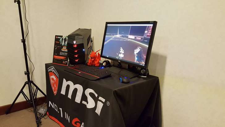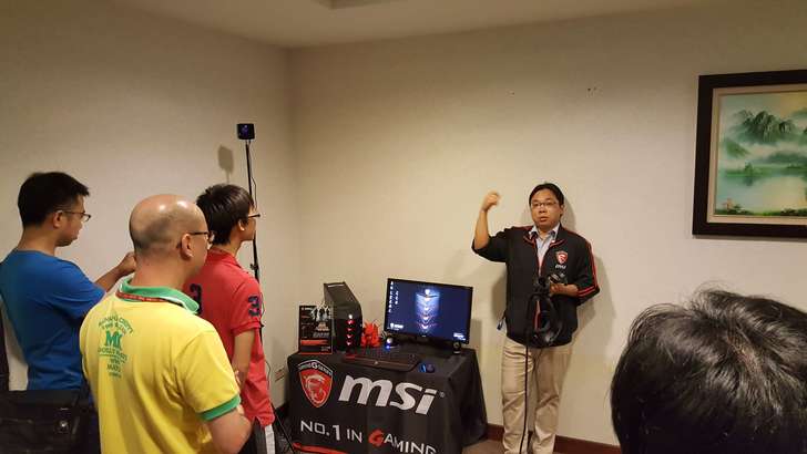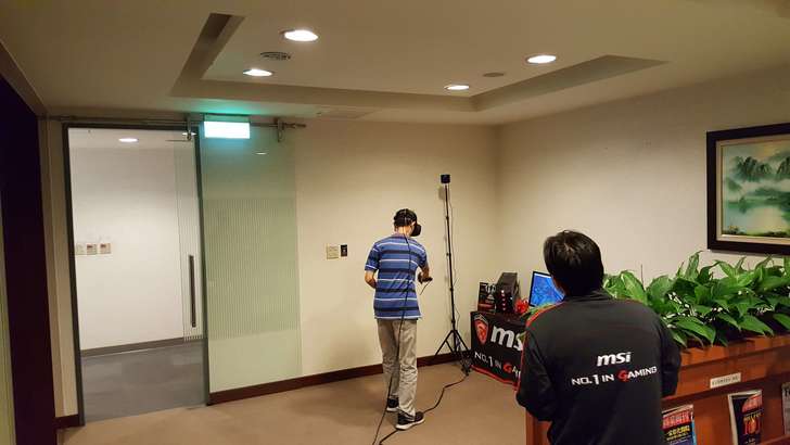 此次的神盾宙斯就是主打VR電競桌機,現場自然不可少了VR的體驗,MSI就在隔壁的小房間貼心準備了HTC VIVE給大家試玩,說到HTC VIVE,真心覺得就算有錢買得起,也不一定玩得起啊啊啊,主因在於有些遊戲是需要體感空間活動去遊玩的,所以如果客廳不夠大、房間不夠大,總之活動空間不足就會很難完全體驗到HTC VIVE的迷人之處……等等,好像扯遠了,讓我們回到神盾宙斯上哈哈。
