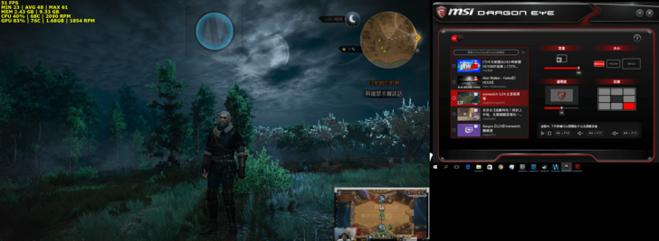 ▲【巫師3】「Aegis神盾 宙斯」搭載的顯卡是NVIDIA GTX 970 4G DDR5,跟我目前使用的顯卡等級一樣,在跑巫師3時效能調最高仍顯得吃力,中度效能才有辦法維持55-60的FPS張數,但巫師3本來就顯卡殺手,中度效能畫面依然很棒,風景還是很漂亮。