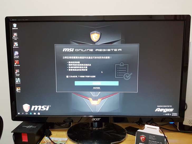 然後在這裡想跟大家說一下,套裝電腦的好處,就是省麻煩,你不用煩惱作業系統、驅動程式、組裝零件,你只需要找個好位置,讓「Aegis神盾 宙斯」乖乖站好,然後按下電源鍵,跟著步驟走就對了,我認為這也是賣點之一。