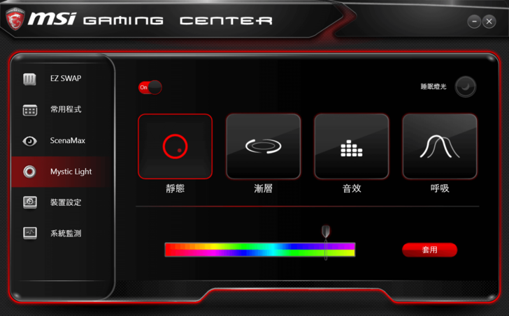 趕緊拉回來一下,說到燈光呢,只要進入桌面,然後找到「MSI GAMING CENTER」,裡面會有一些設定可以調整。