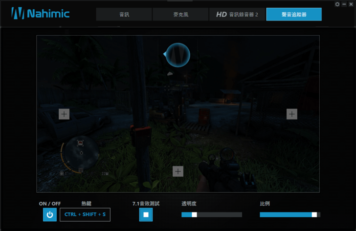 ▲Nahimic介面,聲音追蹤器還不錯,可以辨別聲音的來源方向,這很適合用於需要注意聲音細節的對戰遊戲。