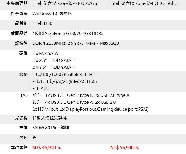 ▲產品規格,兩台主要差異在CPU、RAM、硬碟上的不同,當然啦,價格也不一樣。