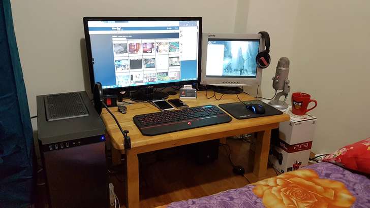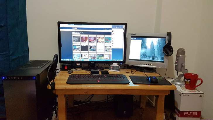 ▲可以看見左邊P100機殼的高度是高於桌子的,佔滿了左側空間。