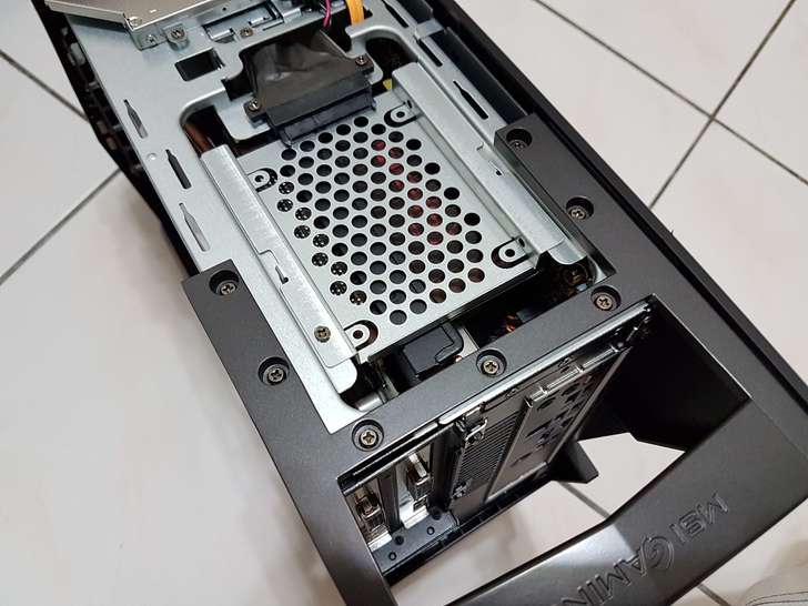 這時已經差不多將「Aegis神盾 宙斯」衣服扒個精光,簡單看了下內部狀況,但內臟(內部零件)部分不敢輕舉妄動,怕拆了裝不回去,整體來看,MSI能在這樣小的體機內塞進旗艦規格,算是令人驚艷,且還能更換硬碟以及RAM(MAX 32G)的部分,直接購買i7版的話,已經是16G RAM以及搭配256GB SSD+1TB硬碟的規格,說實話已經非常夠用了。