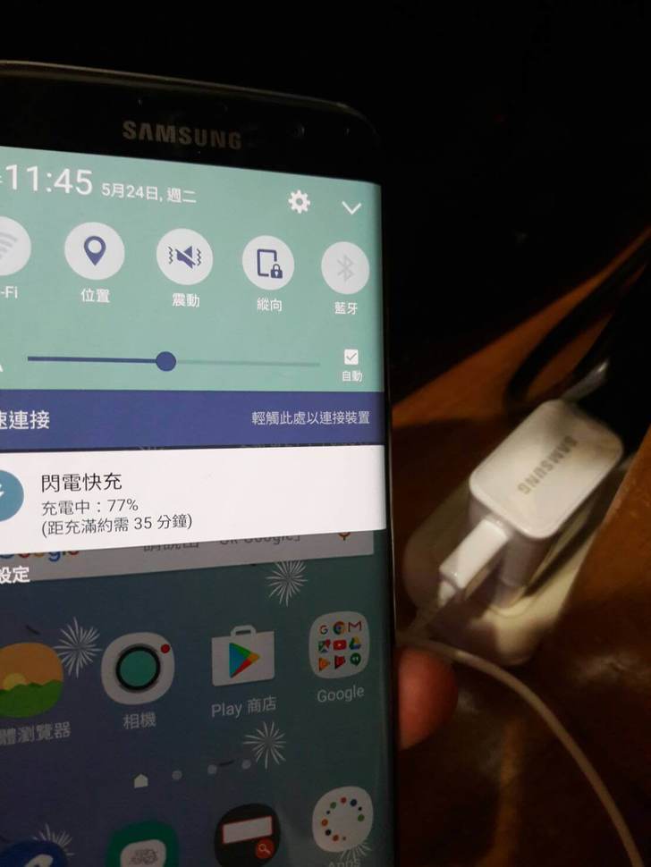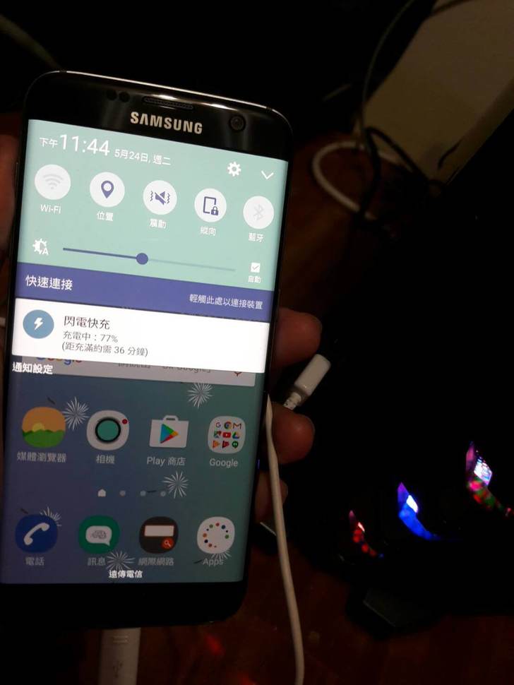 ▲機型:S7 EDGE 這是接在神盾宙斯上充電,一樣顯示「閃電快充」,若關閉快充功能,將會顯示一般傳輸線充電。