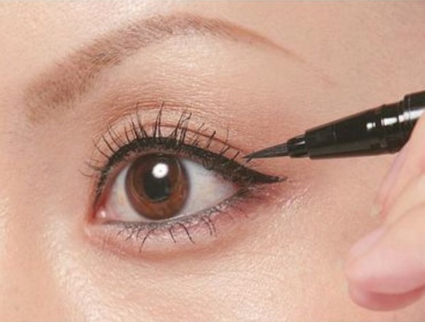 ① 我們先用一般的眼線筆畫出眼線基本輪廓,使用鉛筆較不容易畫歪,最適合打草稿。從瞳孔的上方逐步一筆一點的畫在接近睫毛的生長處直到眼尾。