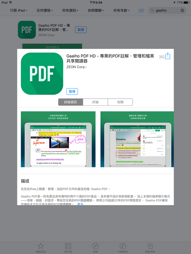 二、Gaaiho PDF for Ipad Air---Gaaiho PDF - 專業的PDF註解、管理和檔案共享閱讀器