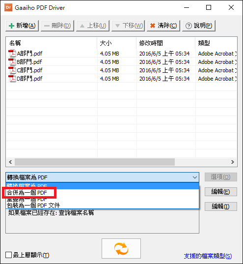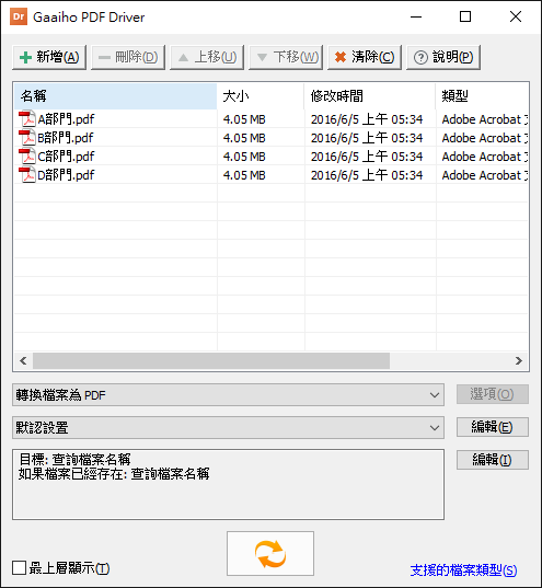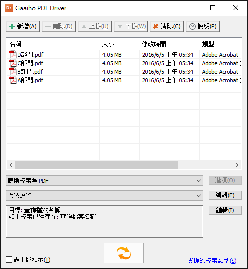 批次將多個不同類型的檔案,轉換成符合國際標準的高品質 PDF 檔案。