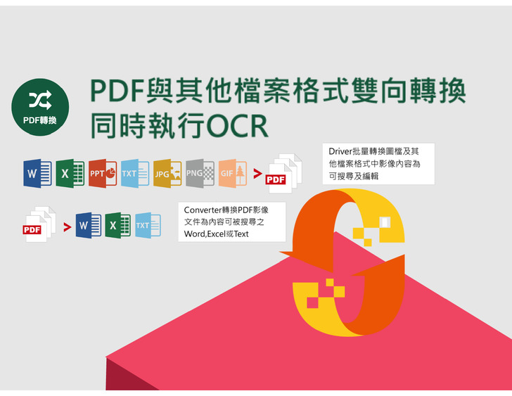 PDF轉換-轉換PDF文件為Word、Excel、圖片或文字文件,並同時執行OCR(光學字元識別),精準辨識掃描文件或圖片內容並轉換為可編輯與複製的文字。