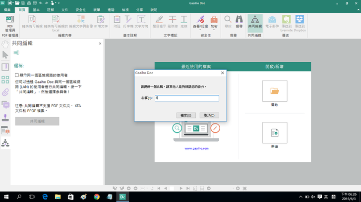 共同編輯PDF可以透過同網域的電腦直接加入共同編輯文件的人
