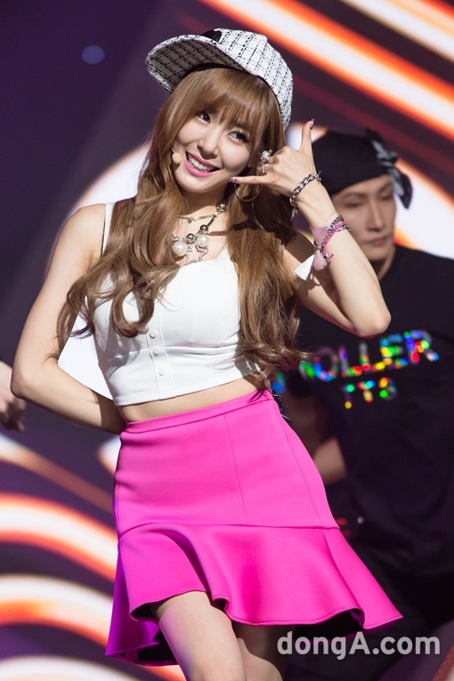 這次Tiffany的首張個人迷你專輯主打歌<I Just Wanna Dance>,其中一套打歌服就是下面這套粉色下衣失蹤造型,配上護膝與帆布鞋,看起來就像準備要去溜滑板或是騎單車的陽光運動少女,小編個人很喜歡這一套啊~也是女孩夏天可以輕易跟著模仿的穿搭。