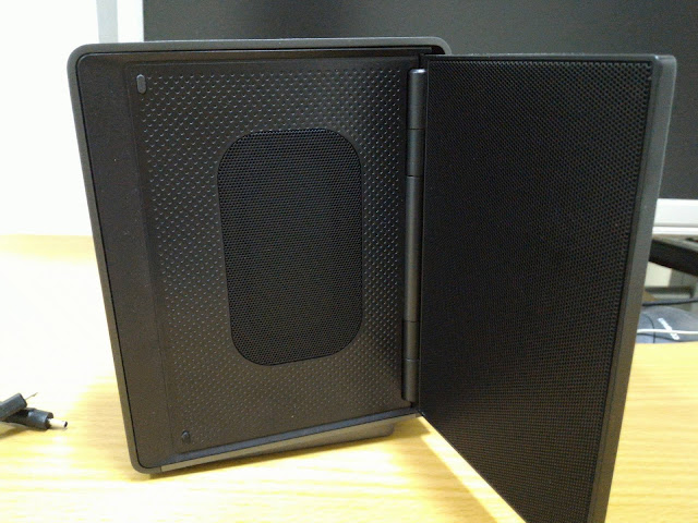 外型上就不用筆者再多做解釋,其特色在其獨特的飛翼設計,攜帶時可以摺疊起來!當播放實在展開以達到更佳的音場環繞!