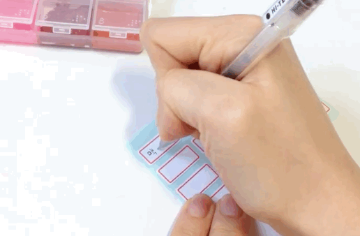 ⑤ 蓋上收納盒的蓋子,使用標籤貼紙寫上每個顏色並貼在它對應的位置做註記。