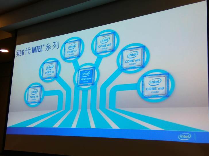 ▲整個第六代CPU非常齊全,入門的奔騰、桌上用I系列、NB用的M系列都有