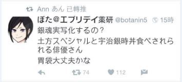 @botanin5 「銀魂要真人化?能夠吃土方和阿銀特別蓋飯的演員,腸胃沒問題嗎?」