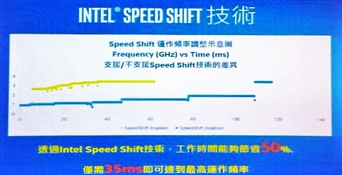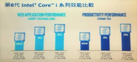 Intel講師Jero在介紹第 6 代 Intel® Core™處理器各項領先技術中, 提及第 6 代 Intel® Core™處理器相較於傳統處理器在速度上有飛躍性的突破, 能使工作時間減少50%, 對3D遊戲顯示效能更高達至30倍,是喜愛打電動者的一大福音. 而值得一提的是應用在筆電上,在不用充電器的狀況下,其電池續航力可達10小時,也是輕,薄,快速時代所極需的條件.