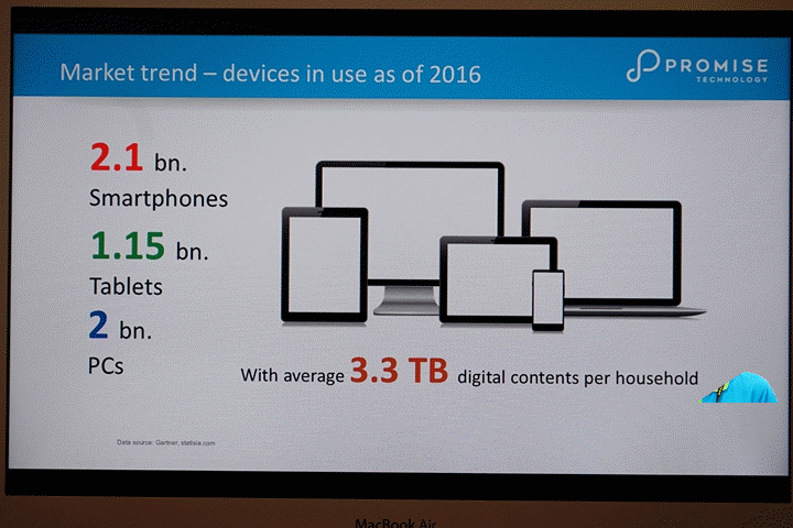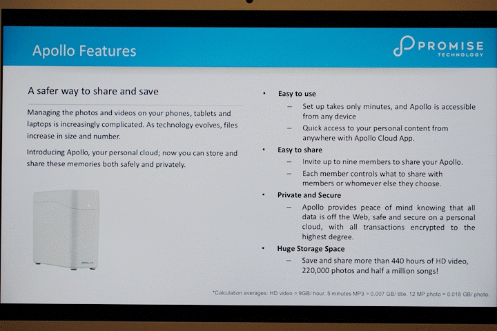 ▼一開始鄭先生就解釋到,透過調查在目前數以百億計的資訊產品中,平均每個家庭會累計產生3.3TB的數位資訊,像是相片,影片..等資料,這也為什麼Apollo Cloud產品,一開始就是設定在4TB的儲存容量。