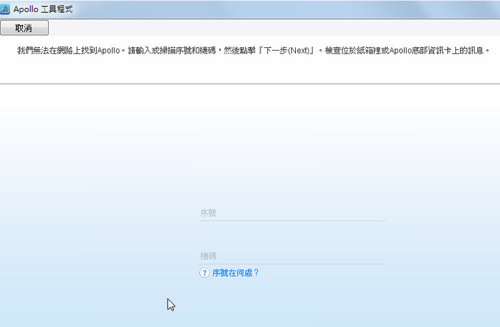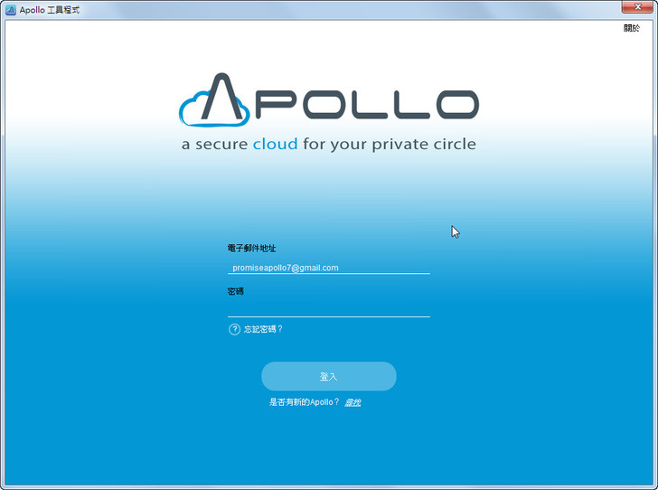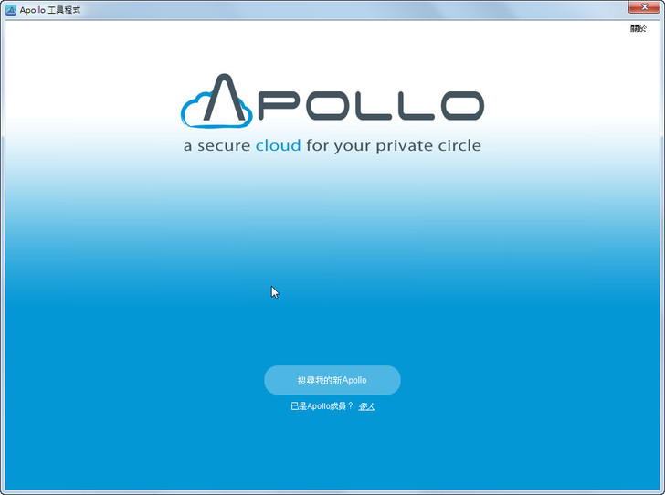 ▼安裝好用戶端軟體後,第一次啟動,就是要和網路上的Apollo Cloud連線。
