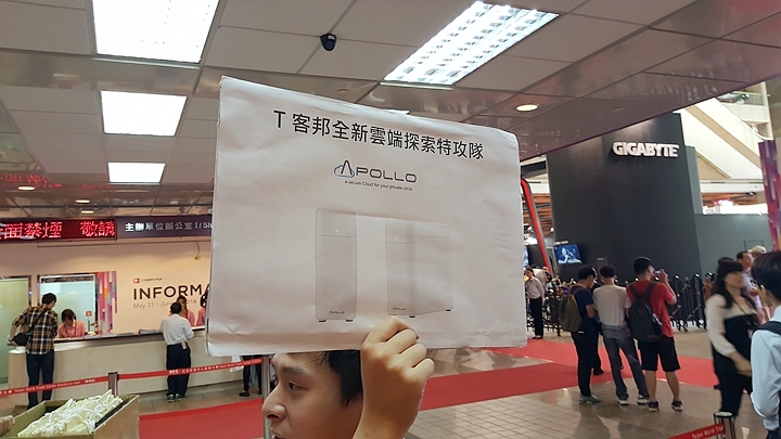 ▼由於今天正是台北 COMPUTEX 2016電腦展的第一天,只針對國外的廠商和商務客戶開放參訪,因此想進去一探Apollo Cloud個人雲端產品,還需要請廠商(喬鼎資訊)協助,提供"EXHIBITOR"級的識別證,才能順利入場。