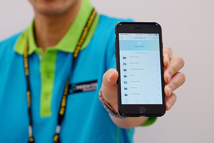 ▼而上傳檔案到Apollo Cloud也很便利,點選+新增內容,點選想要上傳的檔案,就能將檔案備份至Apollo Cloud的4TB硬碟裡,4TB硬碟足足能讓使用者儲存並分享超過 440 小時的高畫質影片、22 萬張相片以及數十萬首歌曲(計算平均值:高畫質影片 = 每小時 9GB。5 分鐘的 MP3 = 每首曲目 0.007 GB。1,200 萬畫素相片 = 每張相片 0.018 GB),不論使用者位在何處,都能能任意從手機、平板、與電腦存取個人數位內容。