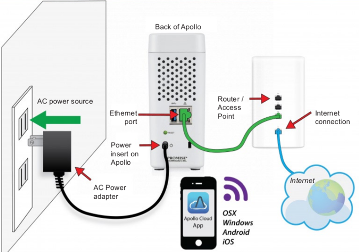 ▼這是官方的連接示意圖,插上電源後,APOLLO就能馬上啟動,再把網路線接上網際網路,整個Apollo Cloud就算是已經準備就緒了!