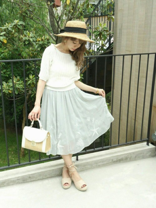 夏季針織 x 天空藍薄紗裙 x 草帽