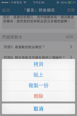 由於題目可以複製或置換順序,問卷也可以複製一份或搬移到其他資料夾,無須操心會花時間從頭來過的麻煩。